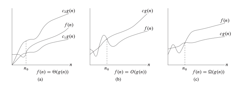 定理:对函数\(f(n), g(n)\)而言,当且仅当 \(f(n)=O(g(n))\), \(f(n)=\Omega(g(n))\) 时, \(f(n) = \Theta(g(n))\)