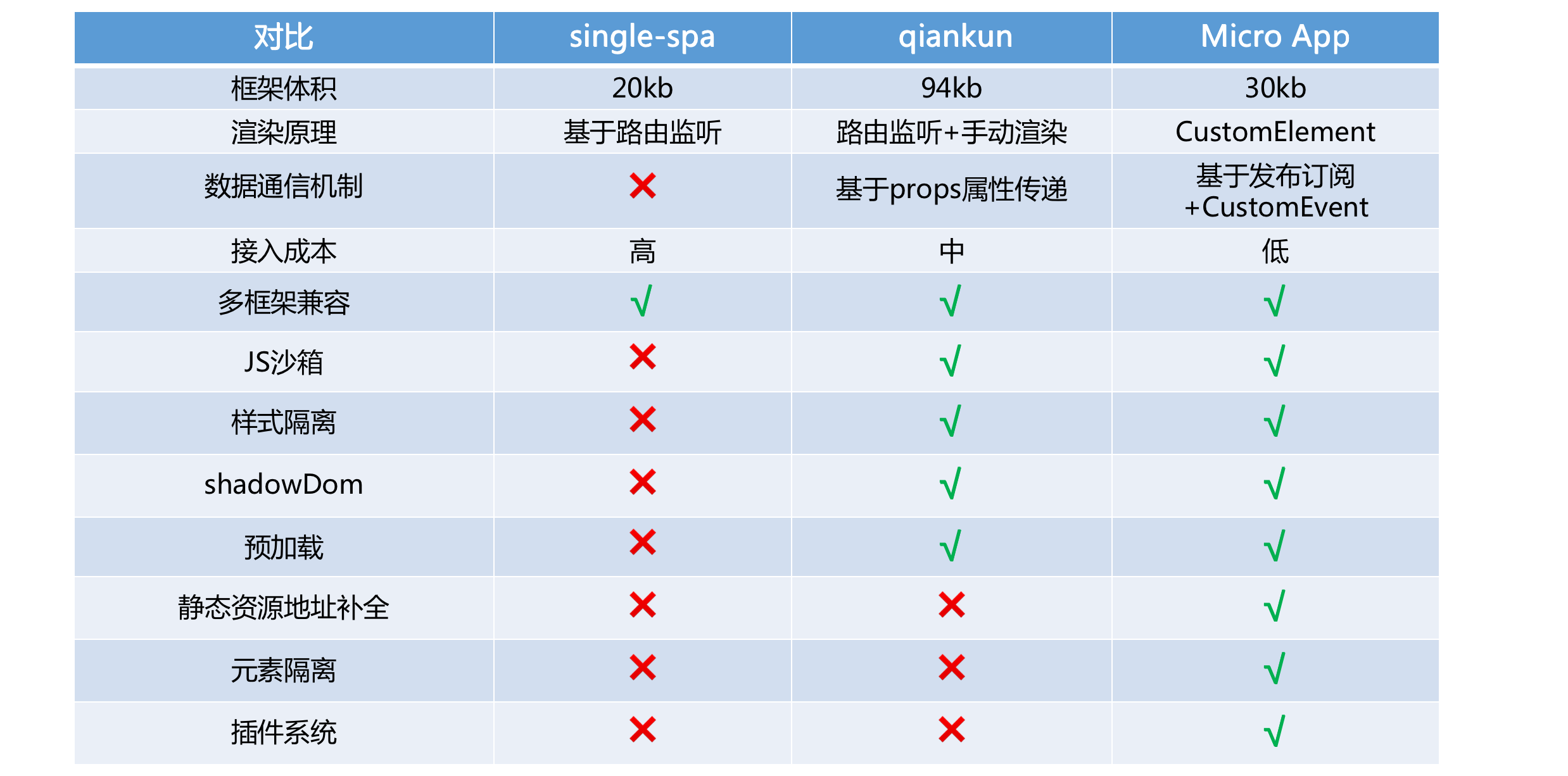 在 single-spa 基础上进行了封装,提供了js沙箱、样式隔离、预加载等功能,并且与技术栈无关,可以兼容不同的框架